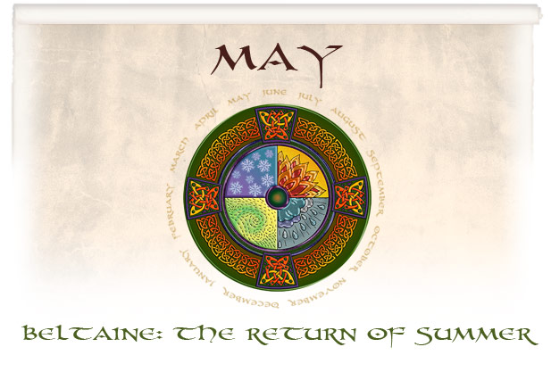 Beltaine is an anglicization of the Irish "Bealtaine" or the Scottish "Bealtuinn." While "tene" clearly means "fire," nobody really knows whether Bel refers to Belenus, a pastoral god of the Gauls, or is from "bel," simply meaning "brilliant." It might even derive from "bil tene" or "lucky fire" because to jump between two Beltane fires was sure to bring good fortune, health to your livestock, and prosperity. When the Druids and their successors raised the Beltaine fires on hilltops throughout the British Isles on May Eve, they were performing a real act of magic, for the fires were lit in order to bring the sun’s light down to earth. In Scotland, every fire in the household was extinguished, and the great fires were lit from the need-fire which was kindled by 3 times 3 men using wood from the nine sacred trees. When the wood burst into flames, it proclaimed the triumph of the light over the dark half of the year. Then the whole hillside came alive as people thrust brands into the newly roaring flames and whirled them about their heads in imitation of the circling of the sun. If any man there was planning a long journey or dangerous undertaking, he leaped backwards and forwards three times through the fire for luck. As the fire sunk low, the girls jumped across it to procure good husbands; pregnant women stepped through it to ensure an easy birth, and children were also carried across the smoldering ashes. When the fire died down, the embers were thrown among the sprouting crops to protect them, while each household carried some back to kindle a new fire in their hearth. When the sun rose that dawn, those who had stayed up to watch it might see it whirl three times upon the horizon before leaping up in all its summer glory. The Rites of Spring Beltaine was a time of fertility and unbridled merrymaking, when young and old would spend the night making love in the Greenwood. In the morning, they would return to the village bearing huge budding boughs of hawthorn (the may-tree) and other spring flowers with which to bedeck themselves, their families, and their houses. They would process back home, stopping at each house to leave flowers, and enjoy the best of food and drink that the home had to offer. In every village, the maypole—usually a birch or ash pole—was raised, and dancing and feasting began. Festivities were led by the May Queen and her consort, the King who was sometimes Jack-in-the-Green, or the Green Man, the old god of the wildwood. They were borne in state through the village in a cart covered with flowers and enthroned in a leafy arbor as the divine couple whose unity symbolized the sacred marriage of earth and sun. To Celebrate Beltaine Today Arise at dawn and wash in the morning dew: the woman who washes her face in it will be beautiful; the man who washes his hands will be skilled with knots and nets. If you live near water, make a garland or posy of spring flowers and cast it into stream, lake or river to bless the water spirits. Prepare a May basket by filling it with flowers and goodwill, then give it to one in need of caring, such as an elderly friend. Beltaine is one of the three "spirit-nights" of the year when the faeries can be seen. At dusk, twist a rowan sprig into a ring and look through it, and you may see them. Make a wish as you jump a bonfire or candle flame for good luck—but make sure you tie up long skirts first! Make a May bowl —wine or punch in which the flowers of sweet woodruff or other fragrant blossoms are soaked—and drink with the one you love. | ||||||||||||||||||||||||||||||||||||||||||||||||||||||||